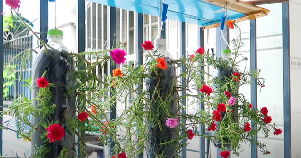 6. Hoa mười giờ trồng hàng rào gỗ