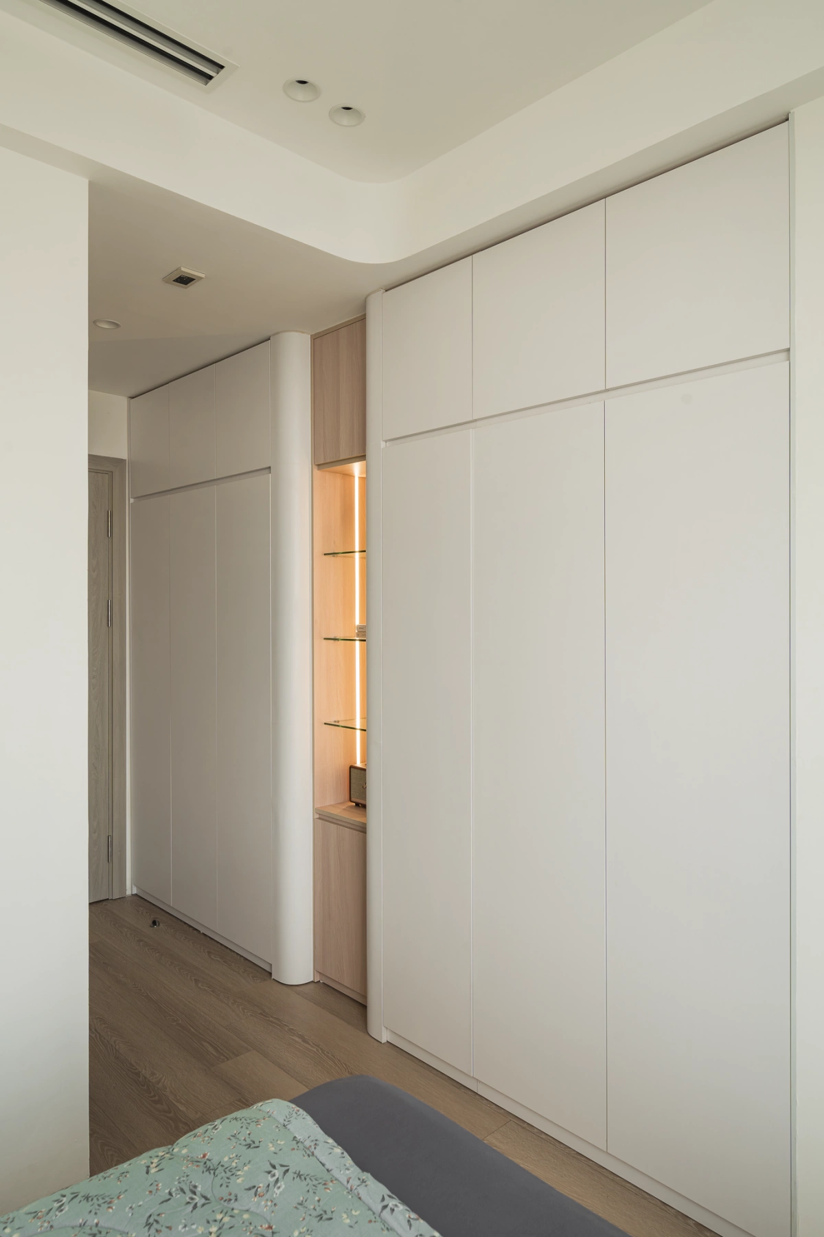 Hệ tủ tường với khoang chứa đồ rộng giúp tăng khả năng lưu trữ và tối ưu không gian.