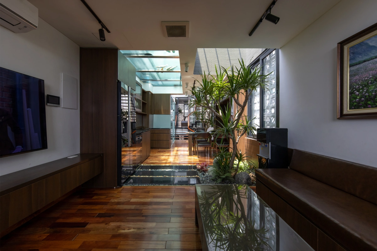 Các khoảng trống được bố trí ở phía trước, sau và giữa nhà giúp việc lấy sáng cho các tầng bên dưới được tốt hơn, giúp gia chủ luôn được sinh hoạt trong điều kiện ánh sáng tự nhiên.