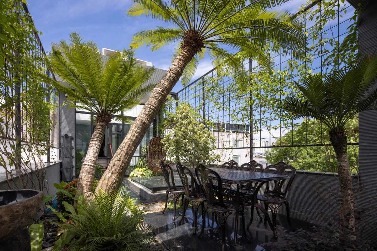 Ý tưởng thiết kế mở giúp đón sáng tự nhiên và đối lưu không khí, giải quyết bài toán “dài sâu – hẹp ngang” của ngôi nhà 5 tầng hướng Tây Nam. Cùng NHÀ ĐẸP SÀI GÒN tham khảo bài viết sau đây nhé!