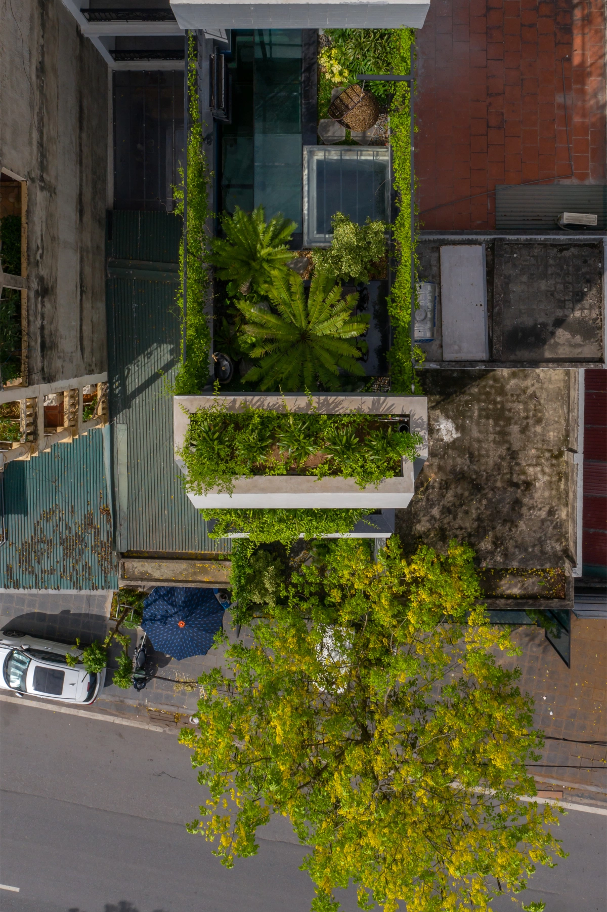 Khu vườn trên mái nhìn từ trên cao xuống.