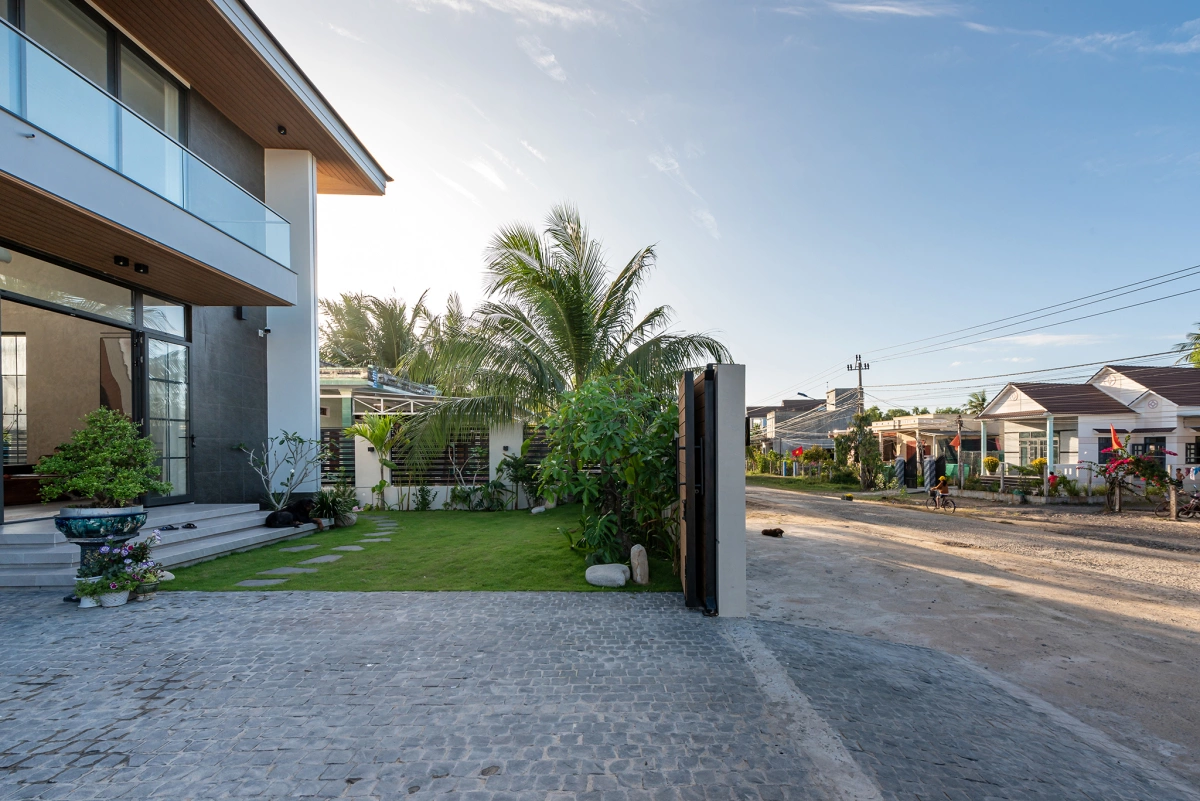 Biệt thự có quy mô 2 tầng, được xây dựng trên khu đất rộng khoảng 490 m2. Công năng chính gồm sân vườn, hiên đậu xe, phòng khách, bếp ăn, khu sinh hoạt chung, phòng thờ, bốn phòng ngủ và ba nhà vệ sinh.