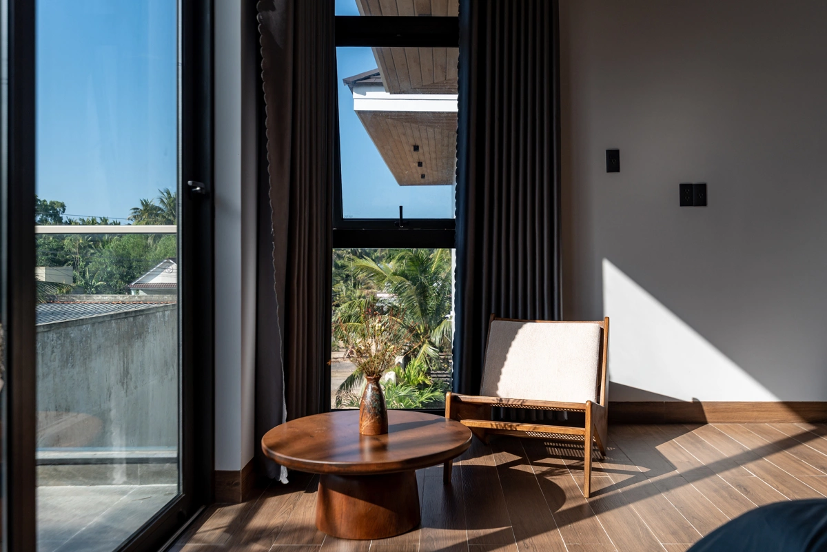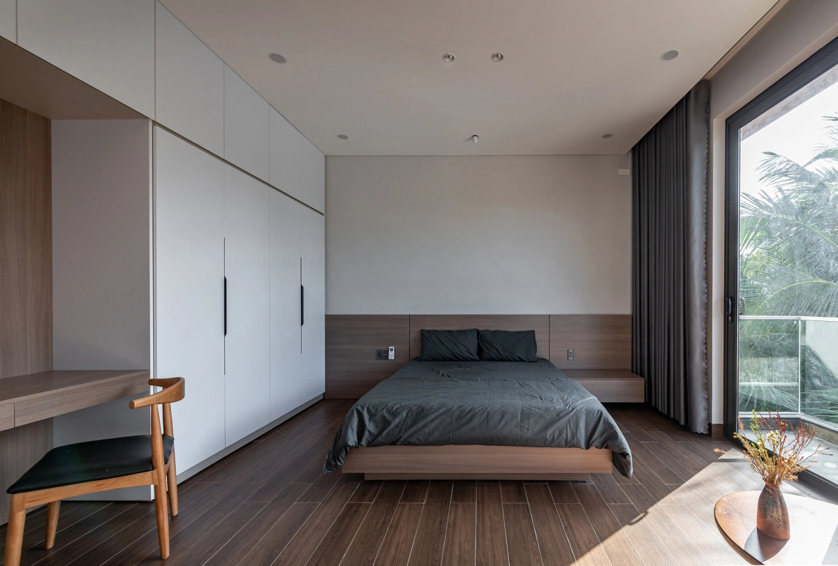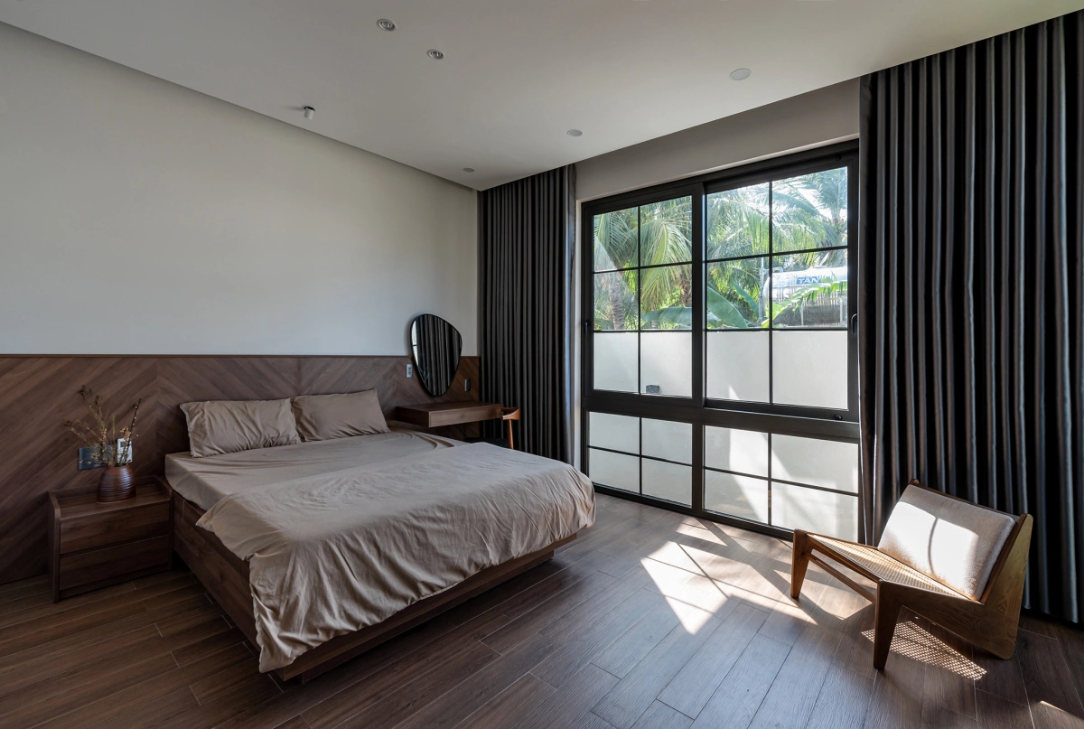 Nhà bố trí tổng 4 phòng ngủ, đều có cửa sổ hoặc ban công kết nối trực tiếp với thiên nhiên bên ngoài.
