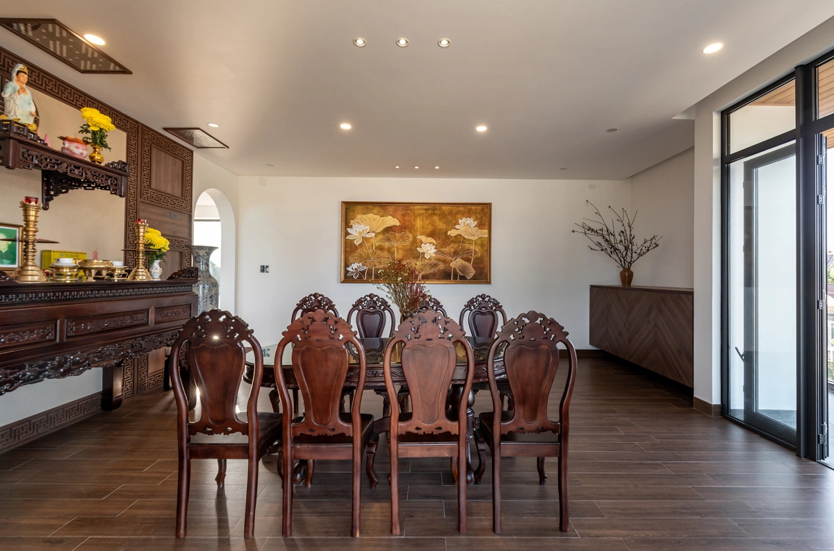 Phòng thờ đặt trang trọng ở tầng 2, tách biệt với hai phòng ngủ thông qua khu sinh hoạt chung.
