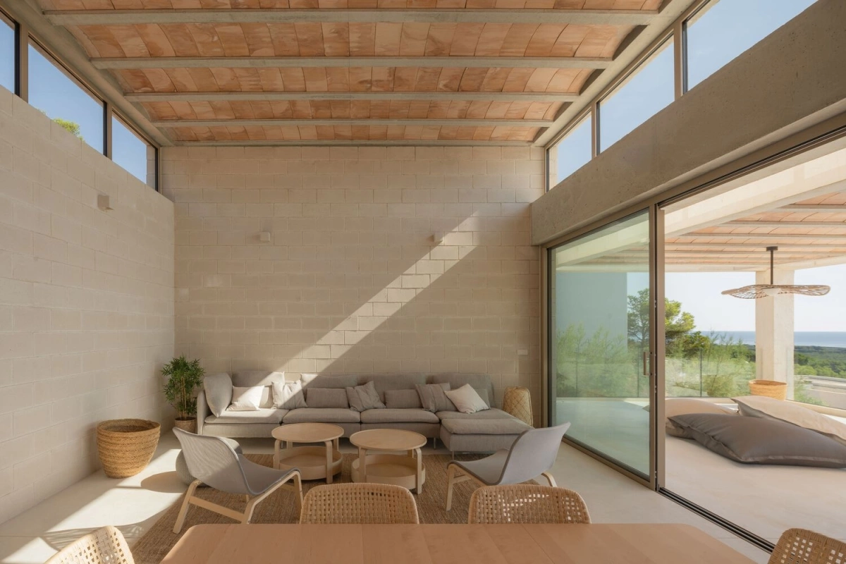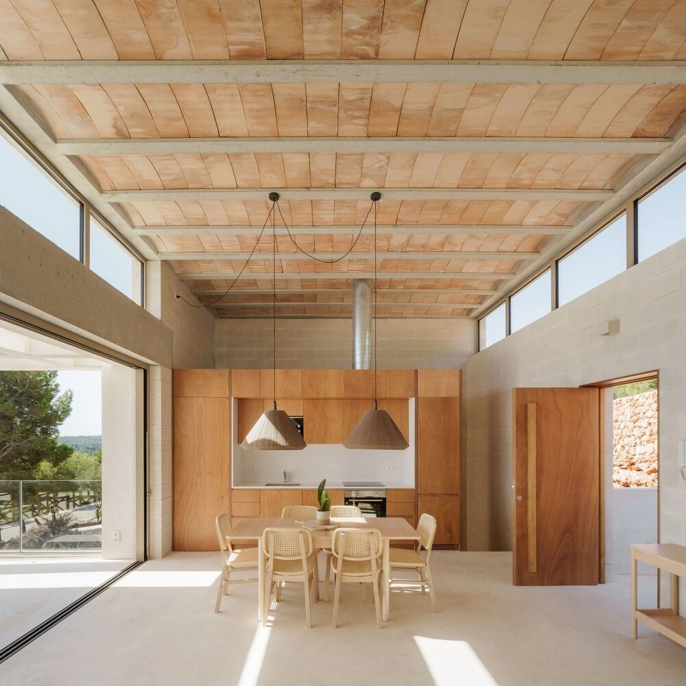 Công trình sử dụng giải pháp thông gió chéo để làm mát các không gian bên trong một cách tự nhiên. Bảng màu chủ đạo trung tính, làm nổi bật nội thất và vật liệu thô mộc.