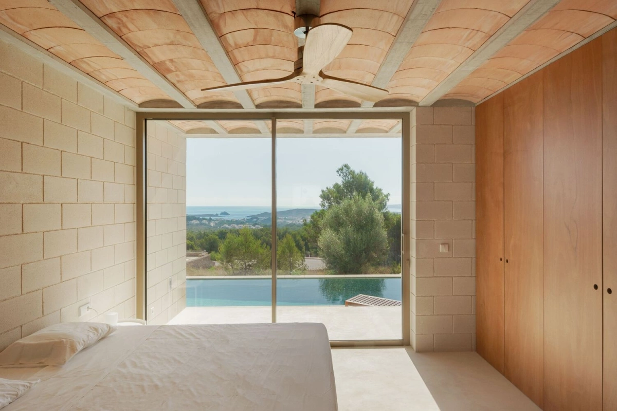 Mỗi phòng ngủ đều có sân hiên riêng nhìn ra cảnh quan xanh mát xung quanh và biển Địa Trung Hải.