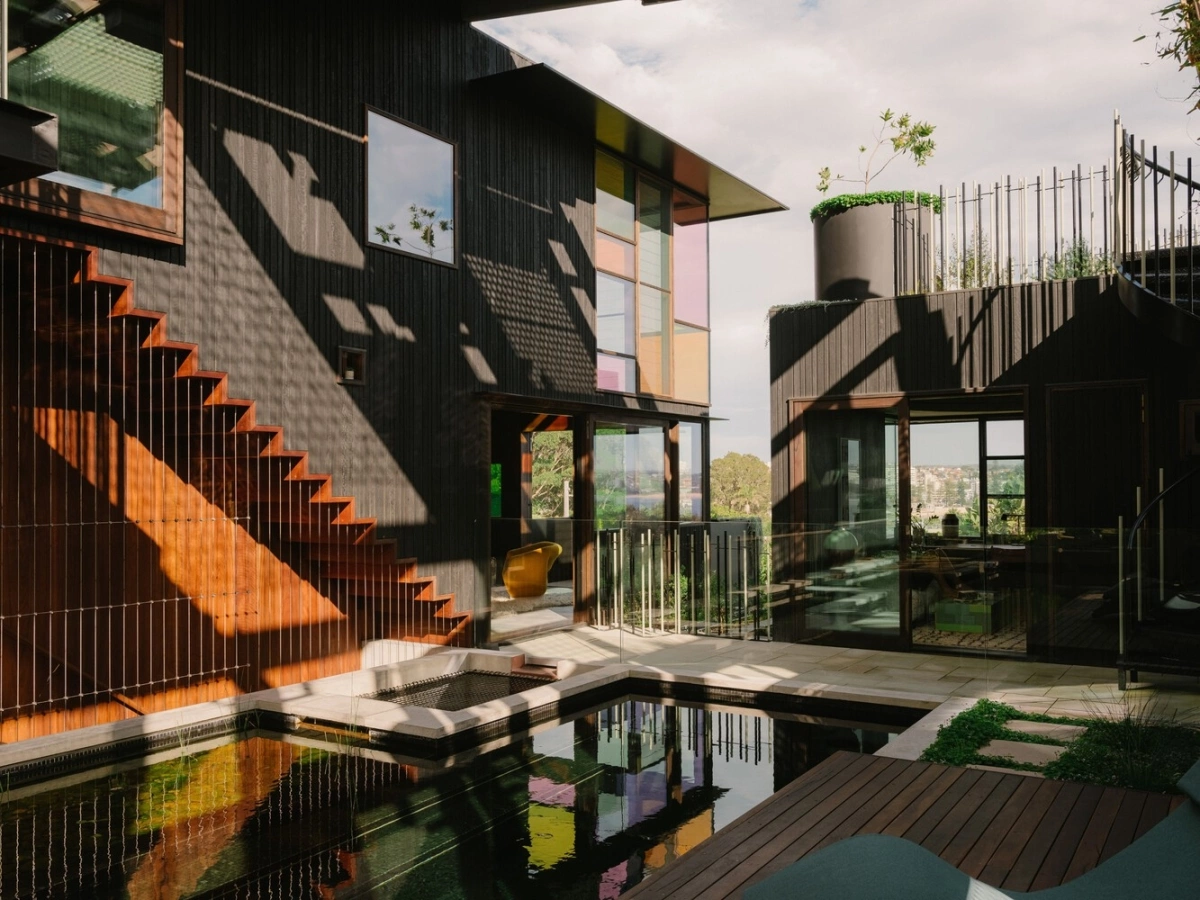 Sử dụng gỗ keo cho lớp ốp bên ngoài đến hồ nước tự nhiên và vật liệu hoàn thiện an toàn cho sức khỏe người ở.