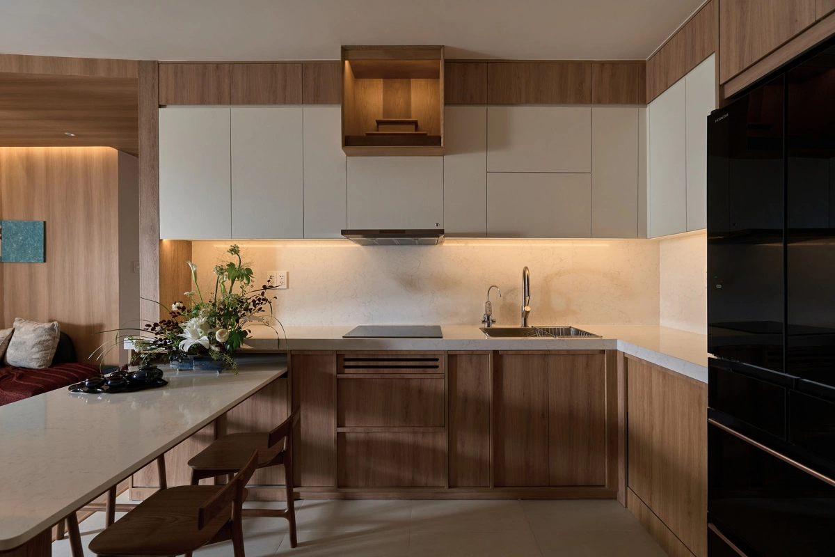 Ngoài bố trí thêm chỗ để đồ, căn hộ còn được bổ sung khu sinh hoạt chung, mở rộng bếp, nâng cấp phòng ngủ cho cả gia đình. Cùng NHÀ ĐẸP SÀI GÒN tham khảo bài viết sau đây nhé!