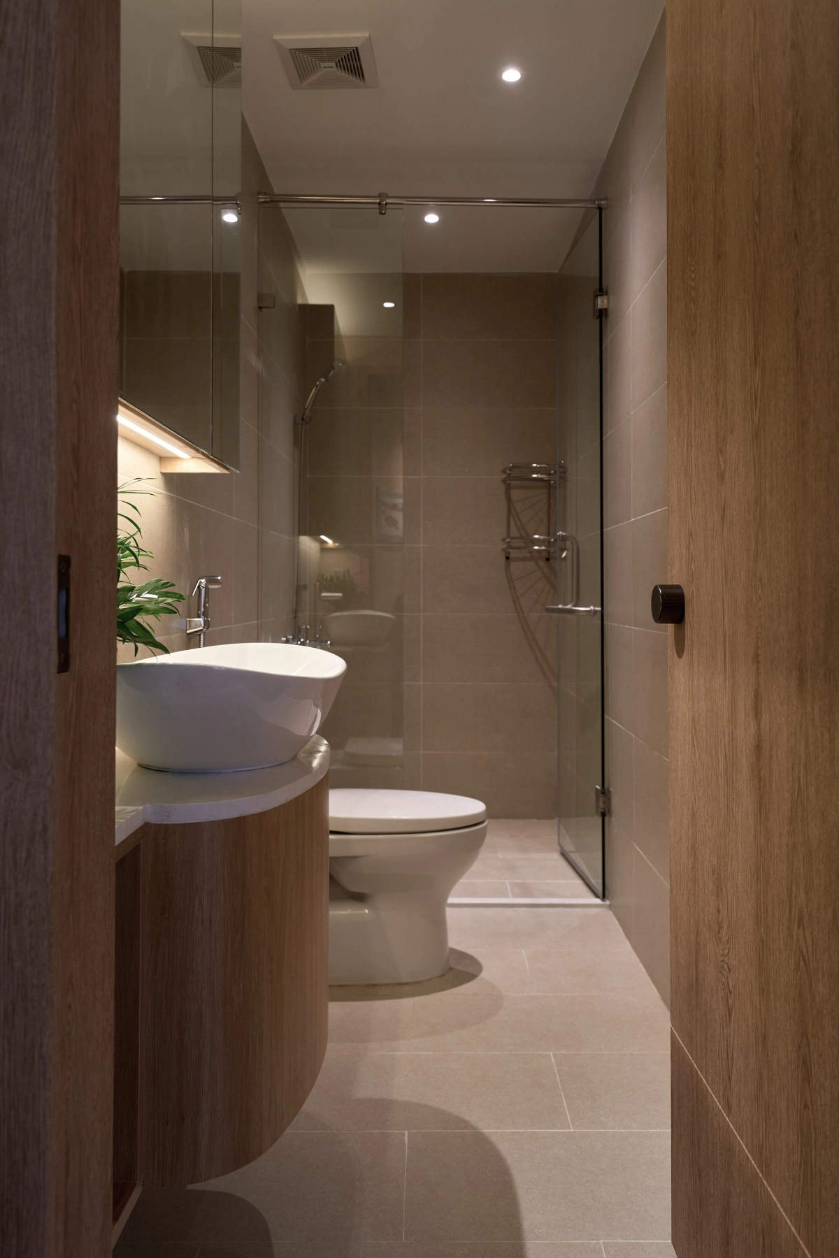 Phòng vệ sinh với vách tắm đứng để tiết kiệm diện tích.