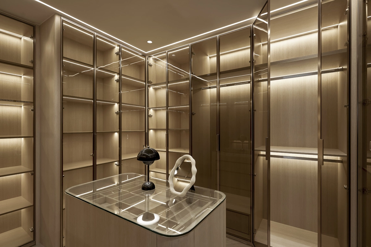 Phòng thay đồ với hệ tủ có khoang lưu trữ rộng rãi.