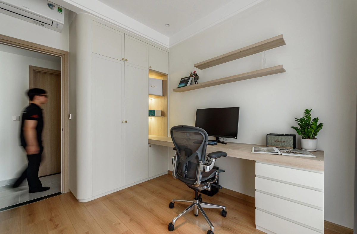 Ngoài khu vực sinh hoạt chung, căn hộ còn được phân chia thành nhiều phòng chức năng để phục vụ nhu cầu của gia chủ, gồm phòng làm việc, phòng ngủ chính và phòng ngủ nhỏ.