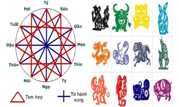 12 con giáp được chia thành 4 nhóm tam hợp như sau: