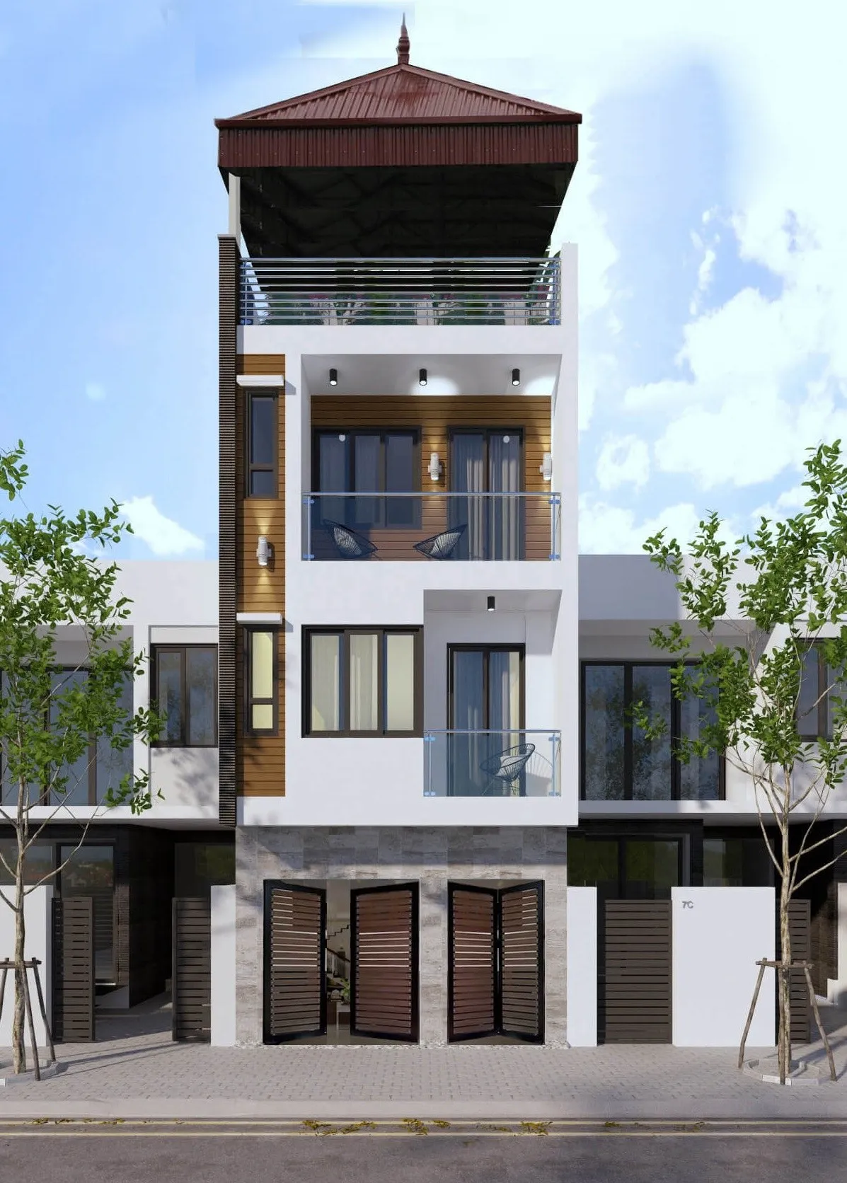 Phối cảnh thiết kế mẫu nhà ống hiện đại 3 tầng 1 tum hấp dẫn thị giác.