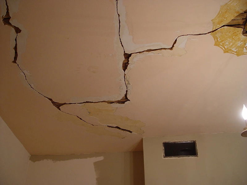 Ngoài ra, trần nhà đã xuống cấp trầm trọng cũng có thể không an toàn. Nếu tràn nhà đã cũ kỹ, việc nứt góc trần xảy ra không phải là điều quá ngạc nhiên và cần phải đối mặt với tình trạng này một cách thận trọng.