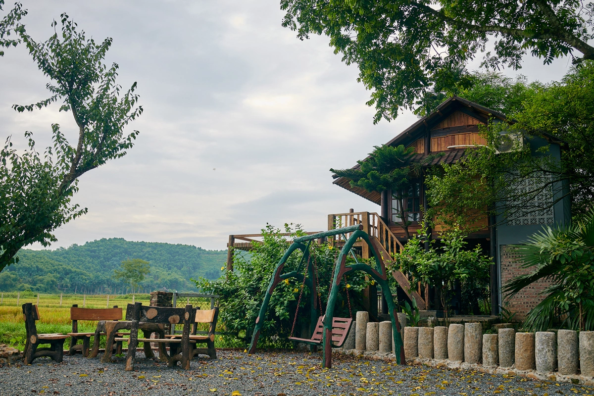 Đây là một quần thể với 6 căn nhà nhỏ với diện tích khoảng 20 m2 và một căn nhà lớn theo phong cách nhà sàn người Mường dành cho bạn bè, anh em và họ hàng đến chơi. Cùng NHÀ ĐẸP SÀI GÒN tham khảo bài viết sau đây nhé!