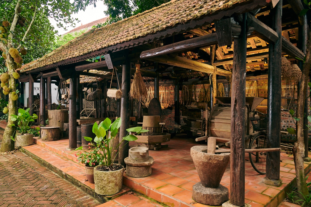 Ngoài các căn nhà, gia chủ còn bố trí một khu trưng bày nông cụ sản xuất sưu tầm, nhằm lưu giữ những kỷ niệm về một thời khó khăn. Nhà trưng bày được xây dựng theo phong cách nhà gỗ của đồng bằng Bắc bộ.