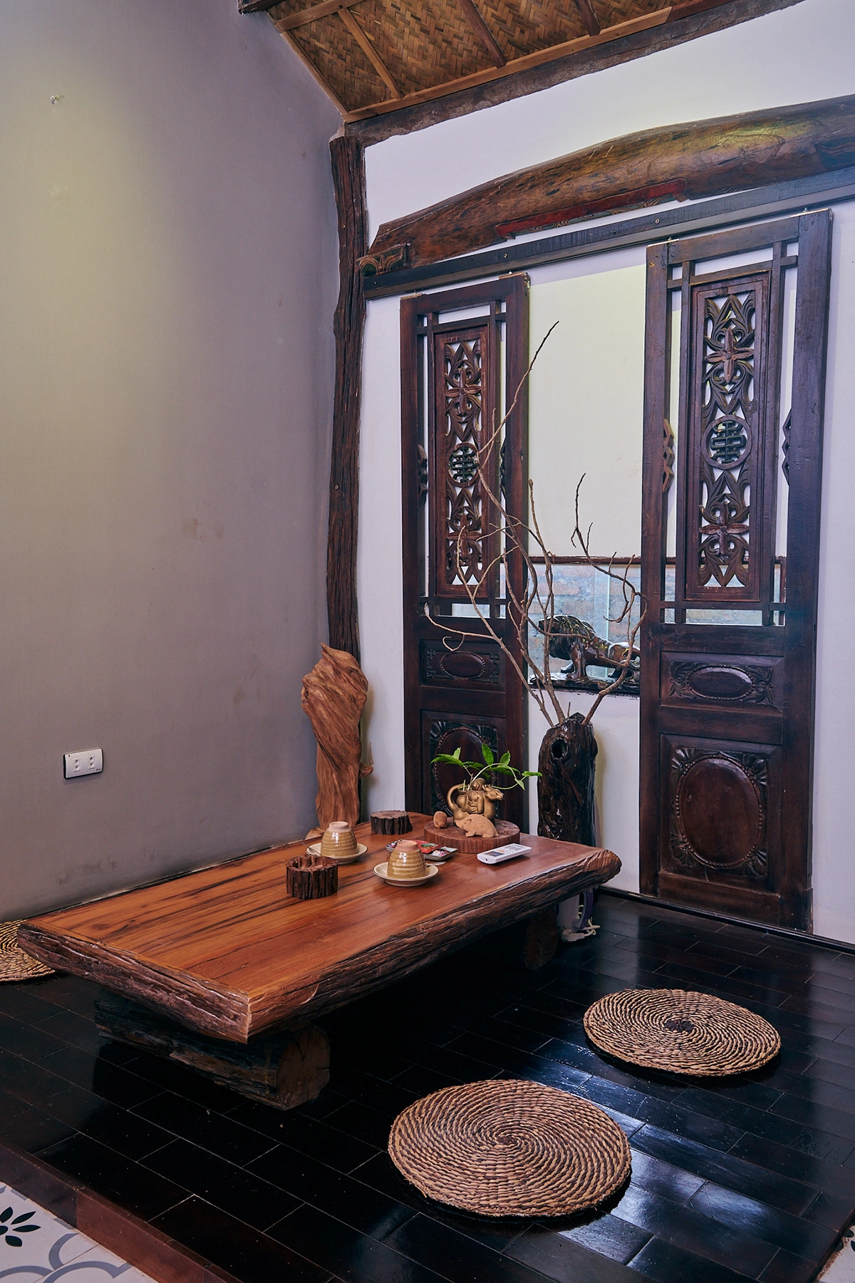Nhà Ngọc Lan kết hợp nét đẹp xưa cũ nhưng vẫn đảm bảo tiện nghi hiện đại cho sinh hoạt. Trong nhà có nhiều đồ cổ trang trí, đậm nét văn hóa truyền thống. Toàn bộ đồ vật được gia chủ tự tay sưu tầm và bày biện.