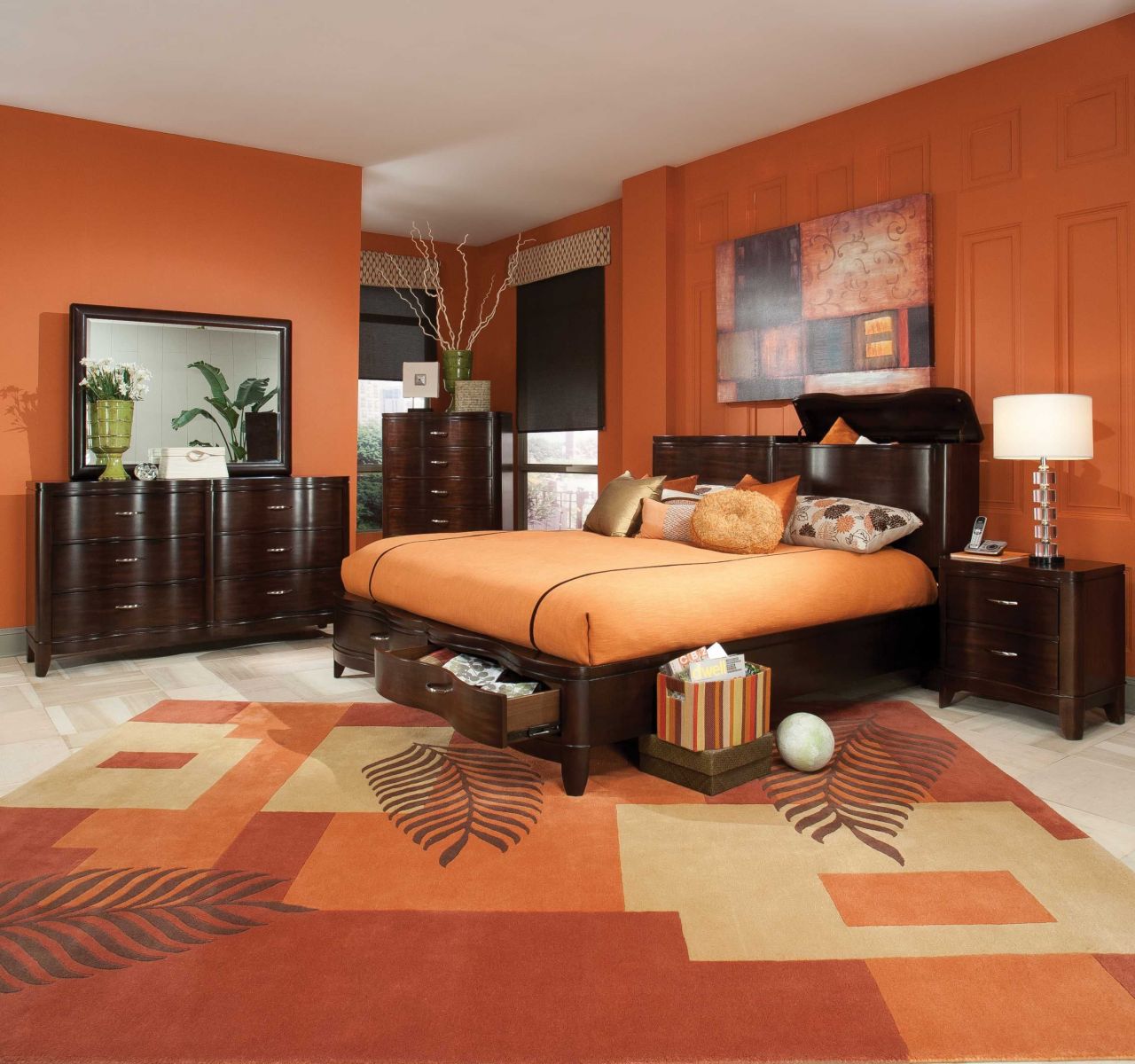 Phòng ngủ màu cam ấm áp