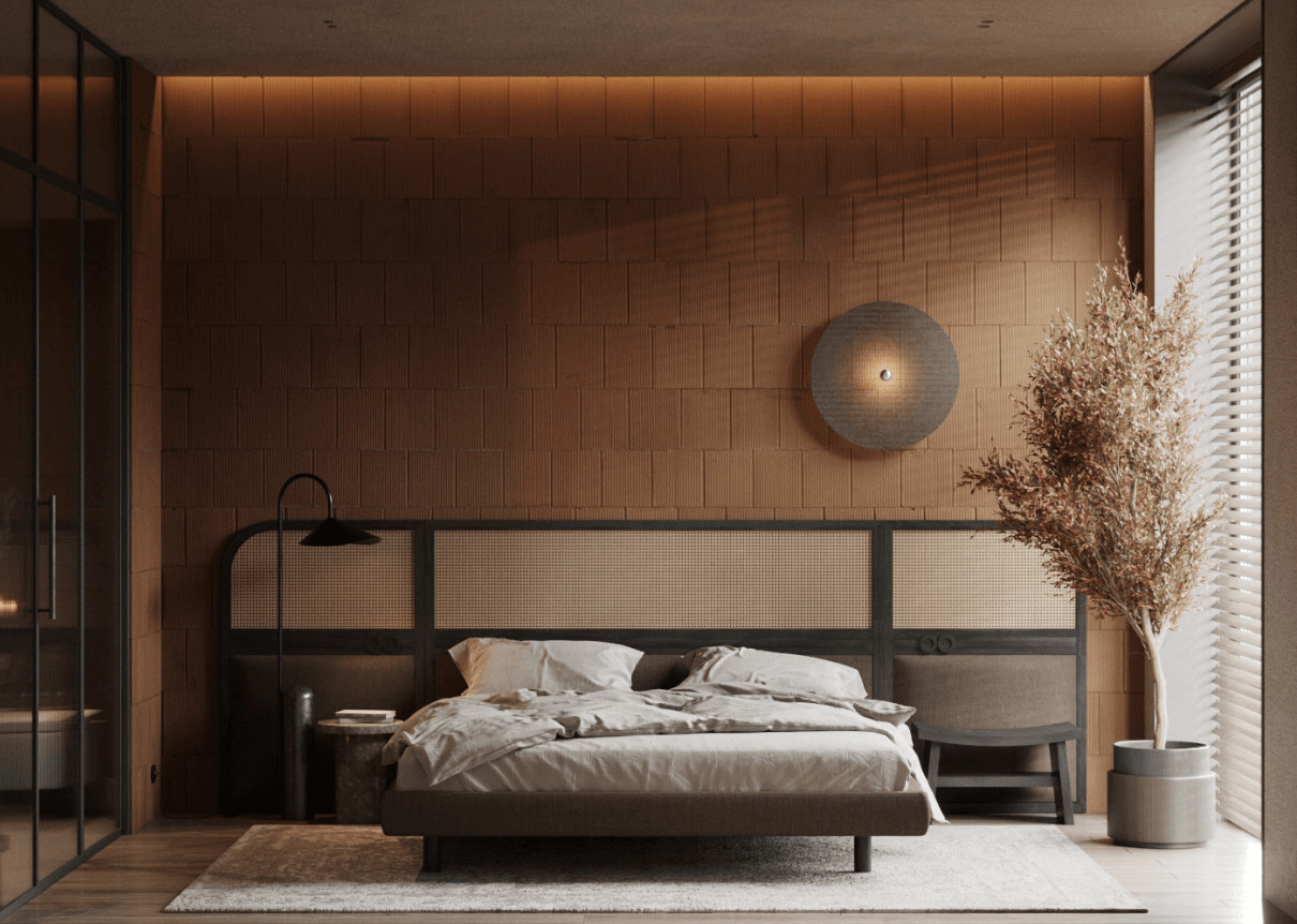 Phòng ngủ: Màu nâu nhạt hoặc trung tính giúp phòng ngủ trở nên yên tĩnh, thư thái, mang đến giấc ngủ ngon lành. Kết hợp với ánh sáng dịu nhẹ, chăn ga đơn sắc và đồ nội thất tối giản sẽ tạo nên không gian nghỉ ngơi lý tưởng.