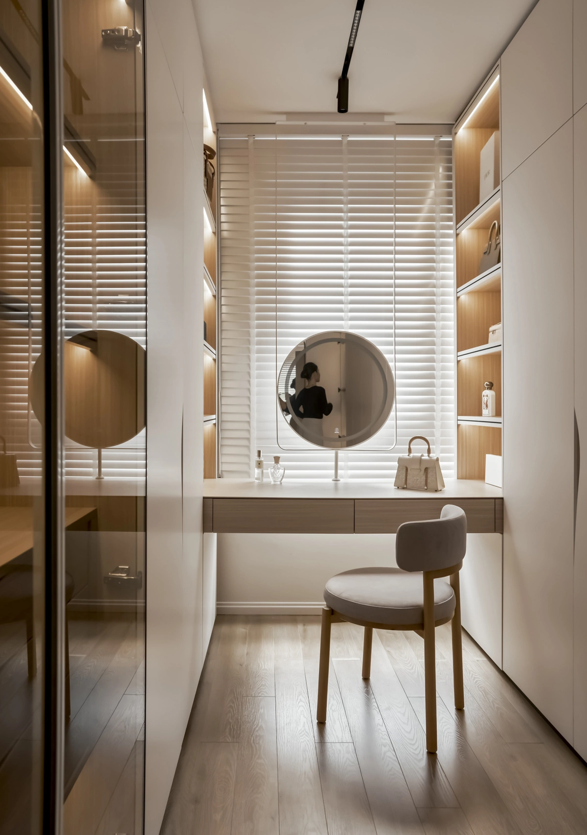 Không gian thay đồ, bàn trang điểm tích hợp trong phòng ngủ chính, liền sát khu vệ sinh nhằm giúp gia chủ thuận tiện sinh hoạt.