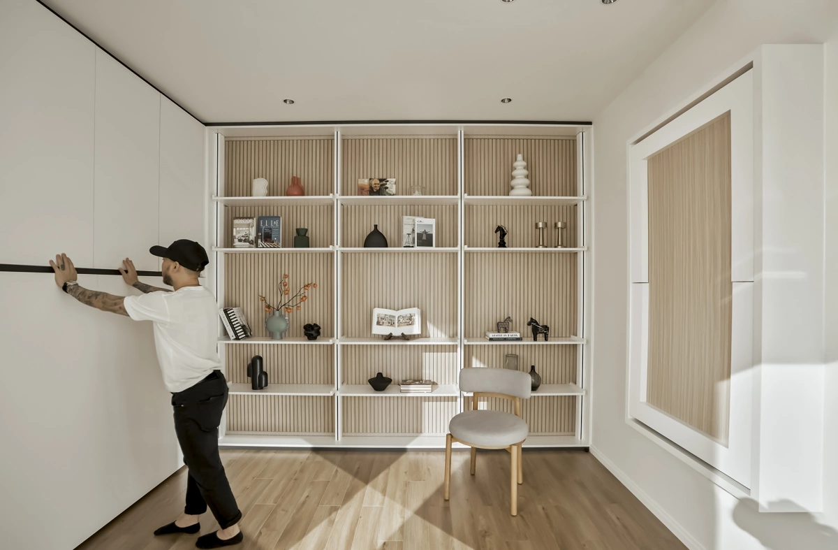 Khi không có nhu cầu sử dụng, bàn làm việc có thể gập gọn gàng vào trong tường.