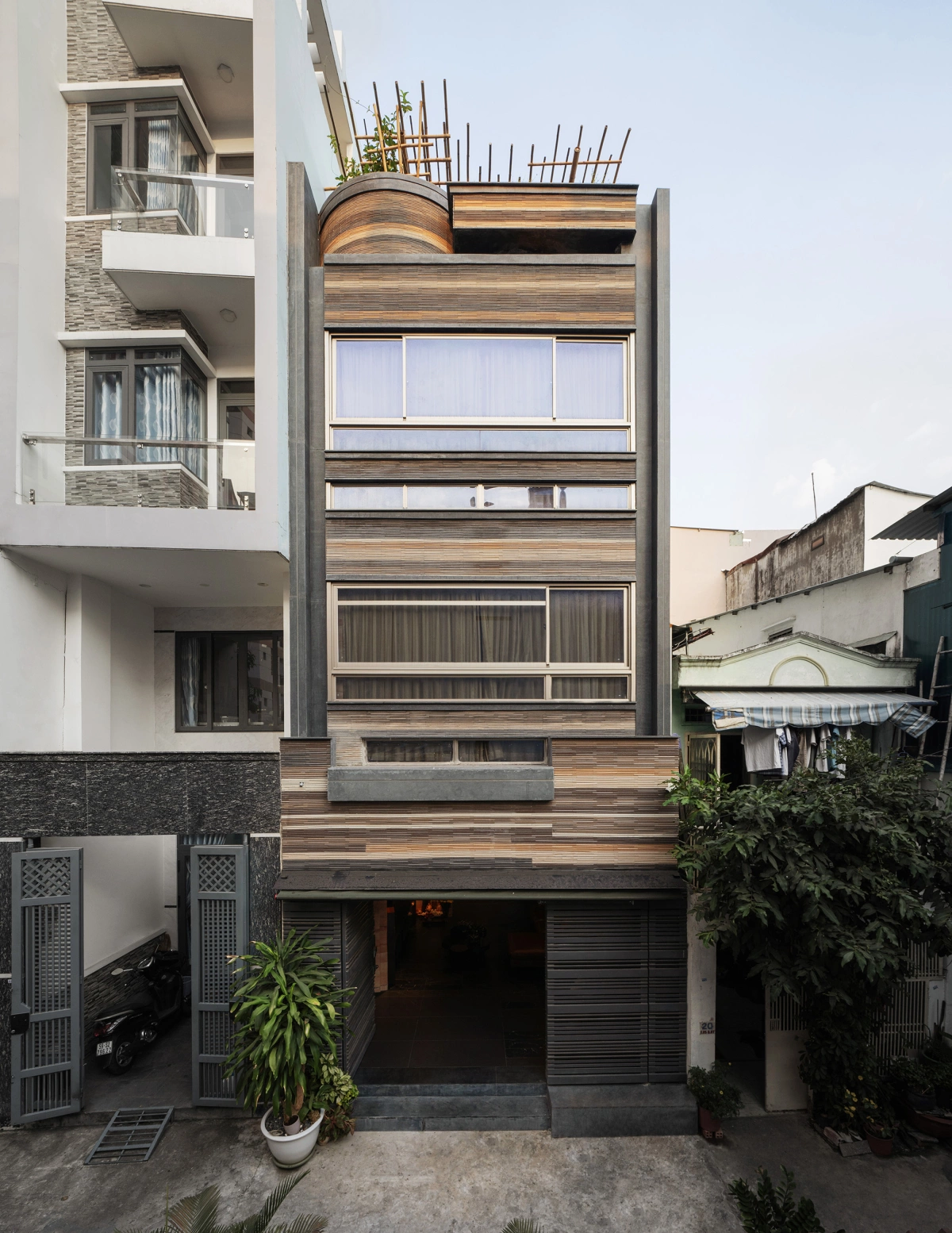 Sự kết hợp của gạch nung tạo ra hình ảnh mô phỏng tầng đất bazan trên mặt đứng công trình, gợi nhắc về quê hương của gia chủ. Cùng NHÀ ĐẸP SÀI GÒN tham khảo bài viết sau đây nhé!