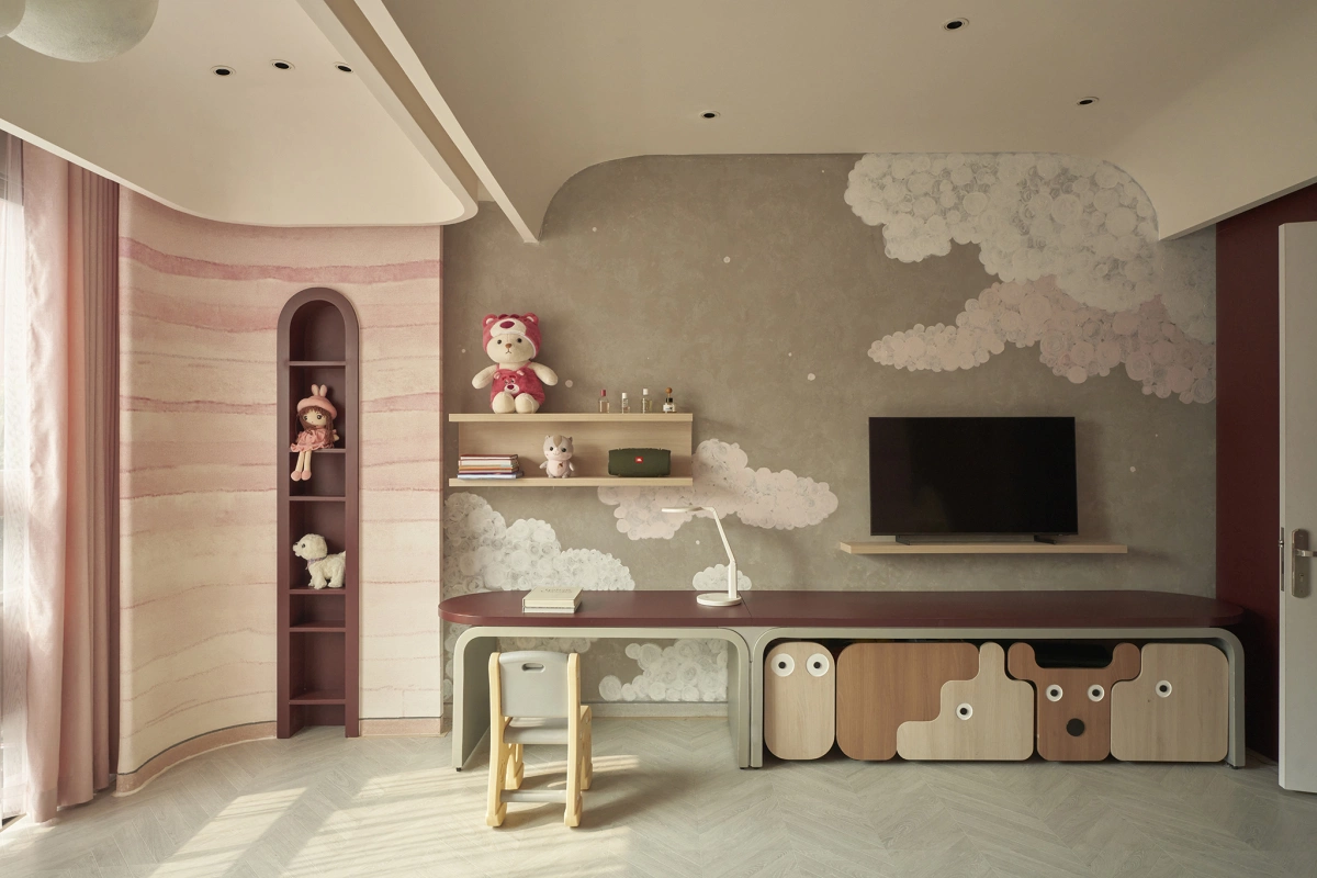 Phòng ngủ còn kết hợp những công năng khác như tủ TV, bàn trang điểm, bàn làm việc hay bàn học.