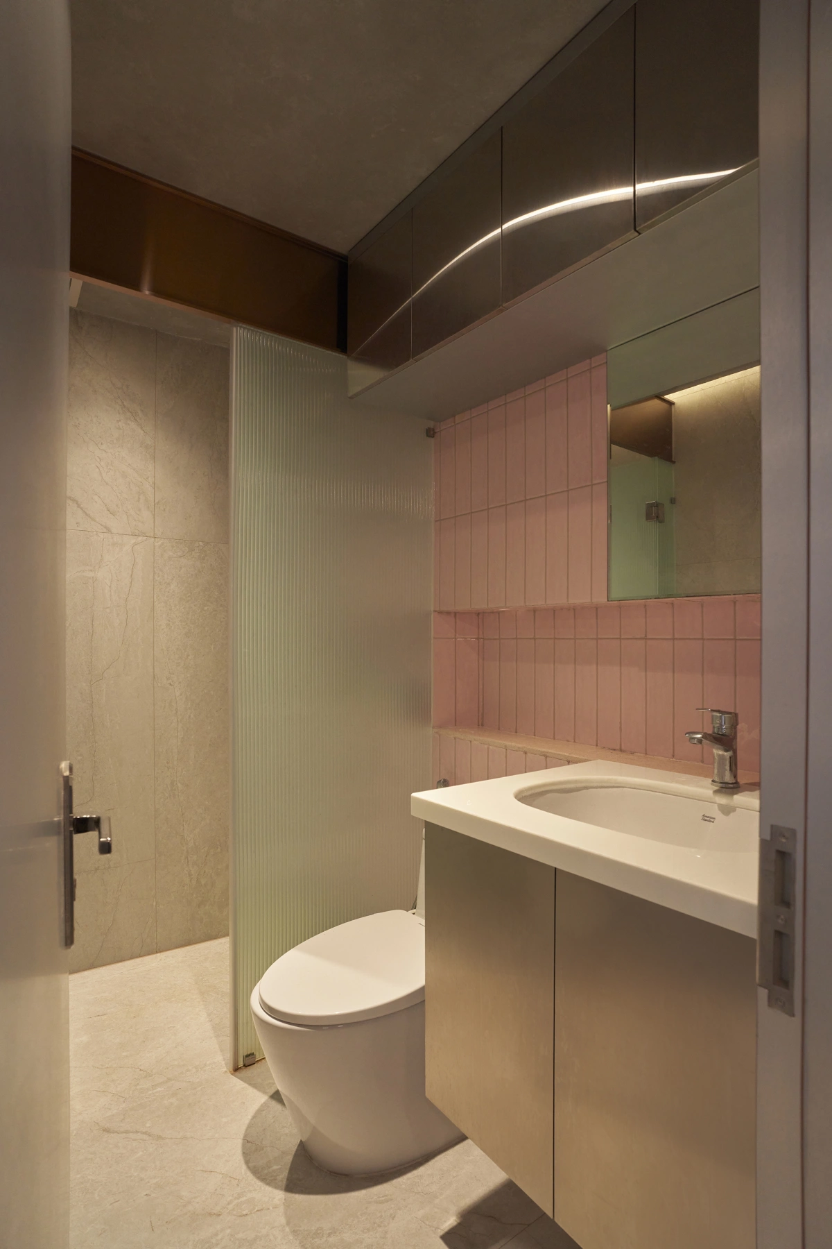Phòng vệ sinh được tách riêng tạo cảm giác khô thoáng. Khu vực tắm đứng cũng được che chắn giúp cho không gian bên ngoài luôn luôn khô ráo.