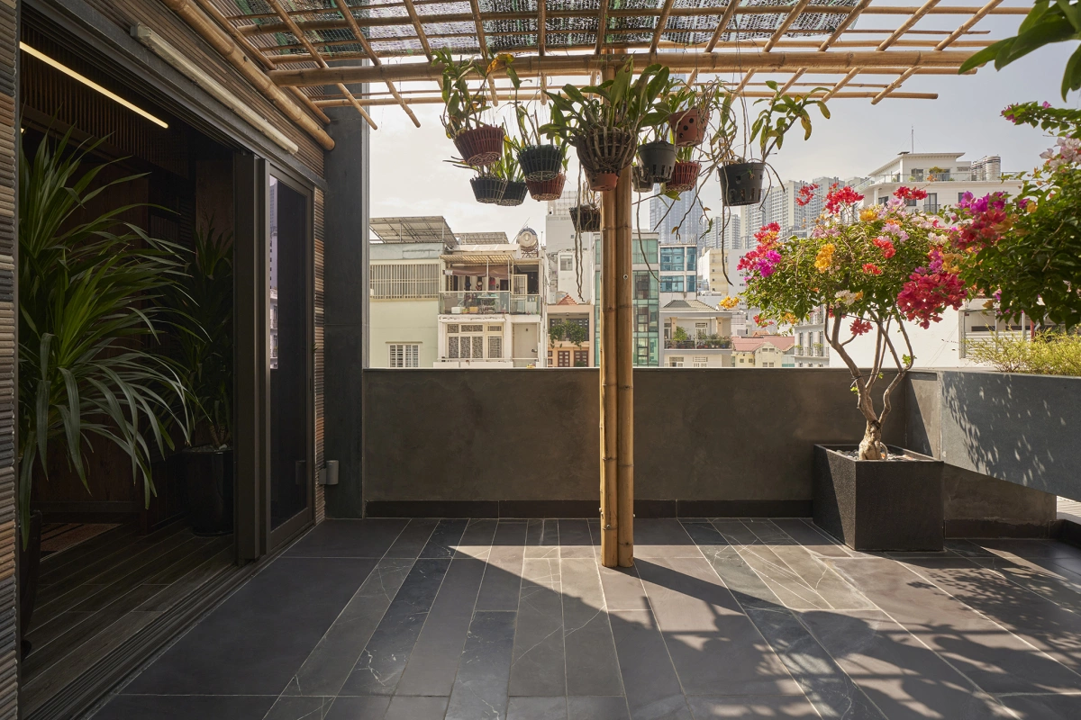 Sân thượng rộng rãi phù hợp làm khu vực trồng cây cảnh, thư giãn.