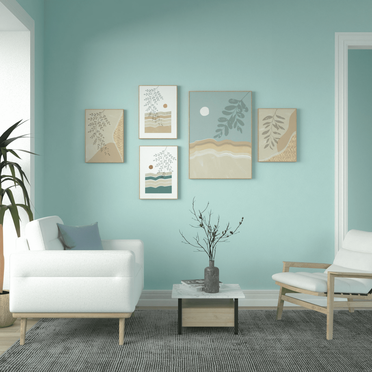 Phối màu xanh pastel với màu xám: Cách phối màu này mang đến vẻ đẹp hiện đại và sang trọng cho không gian.